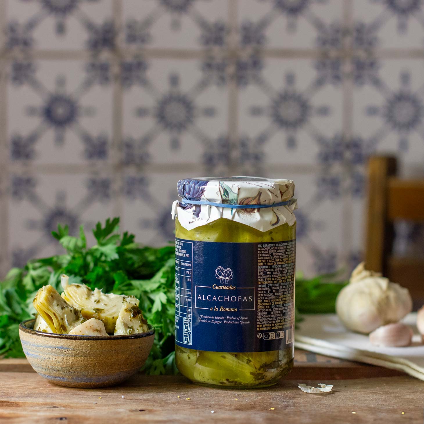 In unserer Kollektion von Gourmet-Konserven, die in keiner Speisekammer fehlen dürfen, zeichnen sich diese Artischockenherzen dadurch aus, dass sie aus der traditionellen Sorte Blanca de Tudela stammen, die für ihre Zartheit und die Faserfreiheit ihrer Herzen bekannt ist. Sie werden in Spanien angebaut und mit größter Sorgfalt von Hand geerntet, geschält und blanchiert, bevor sie „a la romana” zubereitet werden, mit einer Würzmischung aus Petersilie, Basilikum und Knoblauch, die ihren natürlichen Geschmack unterstreicht.