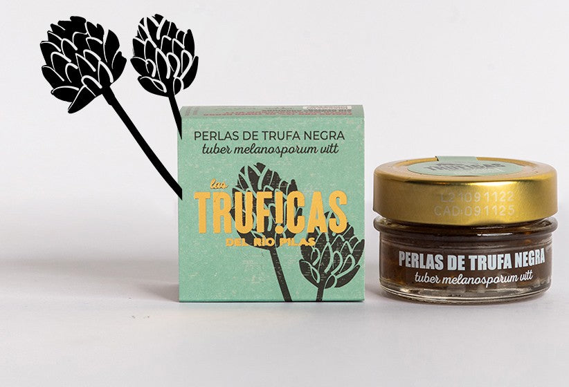 Schwarze Trüffelperlen Tuber melanosporum vitt sind umgekehrte Sphärifikationen, die einzeln in einem sehr aufwendigen und mühsamen Verfahren hergestellt werden. Diese ungewöhnliche Zubereitung verleiht den Trüffelperlen eine einzigartige Textur. Sie werden als „Trüffelkaviar” bezeichnet, da sie beim Zubeißen im Mund zerplatzen. Eine Geschmacksexplosion, die es uns ermöglicht, den wahren Geschmack der schwarzen Trüffel aus Teruel zu genießen, da sie keine künstlichen Aromen enthalten, sondern nur Wasser, Salz und schwarzen Trüffelsaft. Sie sind die perfekte Wahl zu Meeresfrüchten, Austern, Salaten und Fisch. Sie verleihen jedem Gericht, zu dem wir sie hinzufügen, den Geschmack der Trüffel.